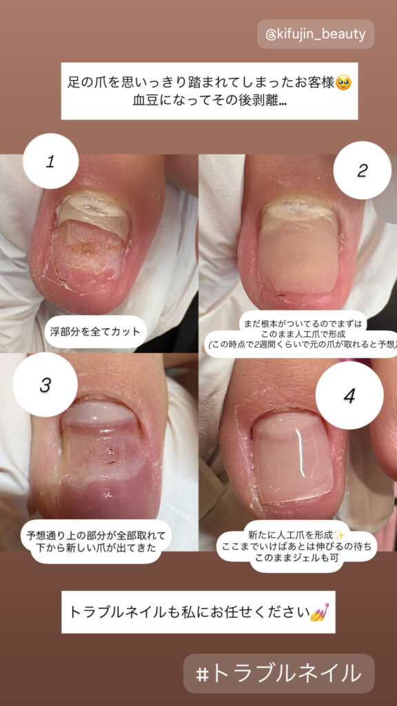 【トラブルネイル症例紹介】剥離・爪が剥がれた方へ──人工爪での再生サポート